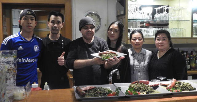 Beim traditionellen Grünkohlessen trafen sich über 80 Heimatfreunde im Restaurant „Hong Kong“ an der Hörder Straße 357 im Ortsteil Stockum. Annamson Nguyen, Xuan Thanh Mai, Hamza Saeed, Tran Thi Nguyen, Thi Hong Hanh Tran, Thi Tuyet Hoa Thai (von links) bewirtschaften dieses chinesische Esslokal gemeinsam, sie kochen selbst und bedienen auch die Gäste. Die vietnamesische Familie Mai folgte als Nachzug zweier Cousins nach Witten. Die beiden Verwandten wurden im Jahr 1980 als Flüchtlinge mit dem Seenotretter „Cap Anamur“ nach Deutschland gebracht und holten später den Rest der Familie nach. Der Chef wird hier nur Herr Mai genannt und betreibt seit 2008 das Stockumer Restaurant. Die beiden jüngsten Kinder wurden hier geboren. Das speziell zubereitete deutsche Winteressen wurde eigens für die Heimatfreunde Stockum/Düren gekocht, um sich bei den Mitgliedern für ihre Treue zum Verein sowie für ihre Unterstützung bei Veranstaltungen und Aktionen zu bedanken.